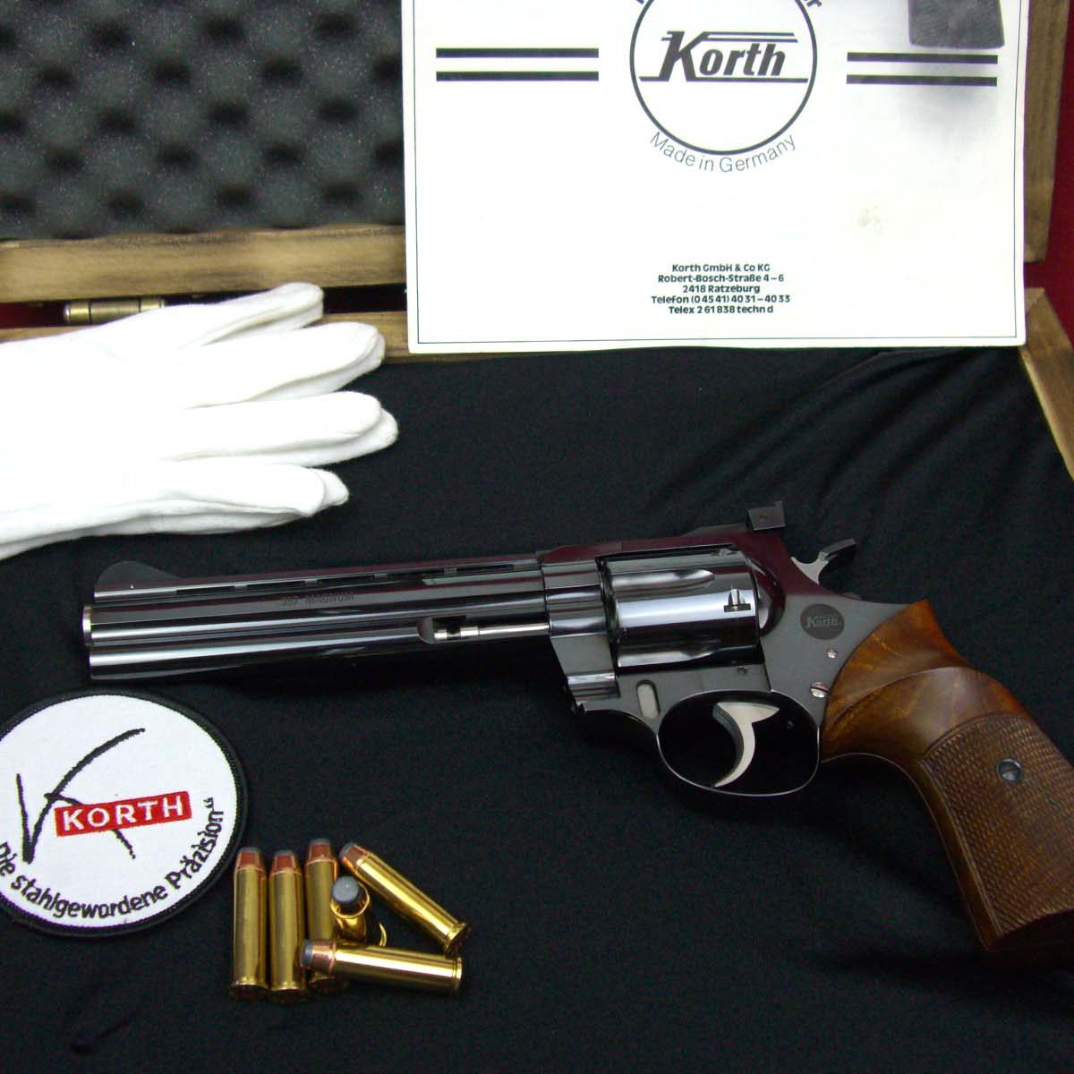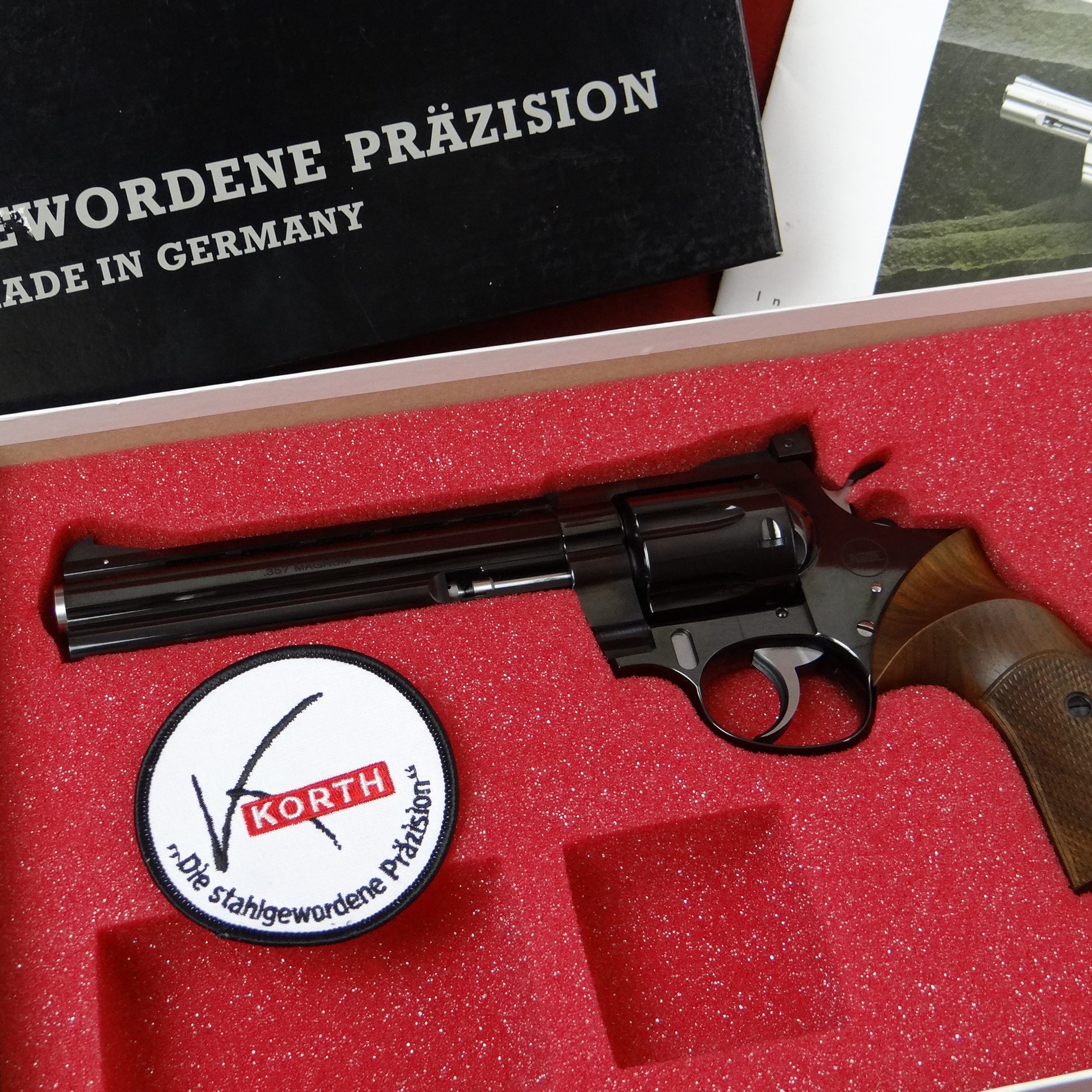 DIE STAHLGEWORDENE PRÄZISION MADE IN GEMANY im cal: .357 Magnum,Willi Korth Ratzeburg. Dieser Revolver stammt aus einer Sammlung, wie auch die anderen hochwertigen Revolver.Der Revolver befindet sich in Sammlerzustand, wurde NICHT geschossen und stand in einer Vitrine.Die Brünierung ist in hervorragendem, 100%igen Zustand, der Lauf ist selbstverständlich spiegelblank.Einen Korth Revolver, noch einmal in diesem Zustand zu finden, dürfte schwer werden.Bedienungsanleitung, und Verpackung gehören zum Angebot.Die Waffe wird selbstverständlich mit VDB Waffenpass verkauft.Helle Stellen und Schlieren die Sie auf den Bildern sehen, sind Spiegelungen durch das Licht unddünne Ölfilme, KEINE Fehler an der Waffe.Preisverhandlungen sind bei Besichtigung nach Terminabsprache selbstverständlich möglich.“ES WAR SCHON IMMER ETWAS GANZ BESONDERES EINE KORTH ZU BESITZEN“Für weitere Informationen nehmen Sie bitte Kontakt mit uns auf.