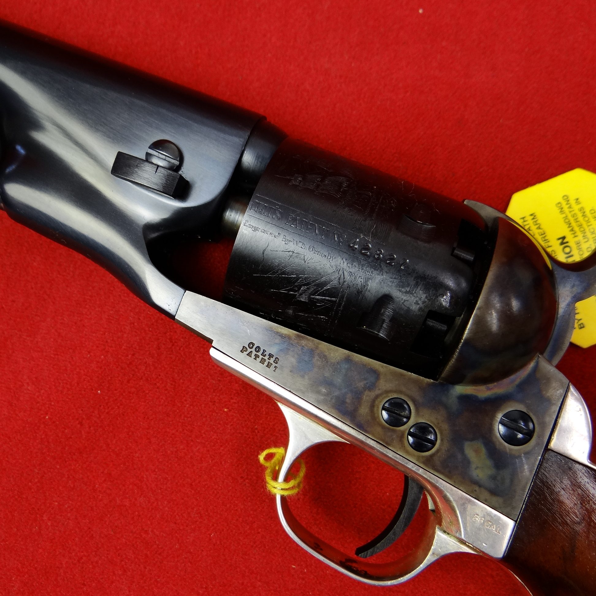 Colt 1861 Navy, Silber Griffstück.KEINE NACHBAU von HEGE oder anderer Firma, original Colt.Es handelt sich auch bei diesem schönen Revolver, Colt 1861 Navy, um einen Revolver aus der Sammlung,aus der auch die anderen hochwertigen Revolver stammen.Der Revolver befindet sich in tadellosem Zustand. (Die Bilder sagen alles).Der Revolver wurde noch NIE geschossen er befindet sich in der original Verpackung mit allen Dokumenten.In dieser Gesamtheit ein sehr seltenes Stück.Fehler die Sie auf den Fotos sehen sind nur Ölspuren oder Spiegelungen durch das Licht, KEINE Fehler.Hier finden Sie noch weitere Informationen zu dem Revolver.:http://www.collectorsfirearms.com/colt-guns/Die Waffen wird mit VDB Waffenpass und Bedienungsanleitung verkauft.Besichtigung und Selbstabholung sind selbstverständlich möglich.Für weitere Informationen nehmen Sie bitte Kontakt mit uns auf.