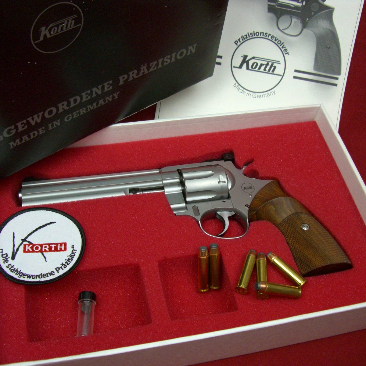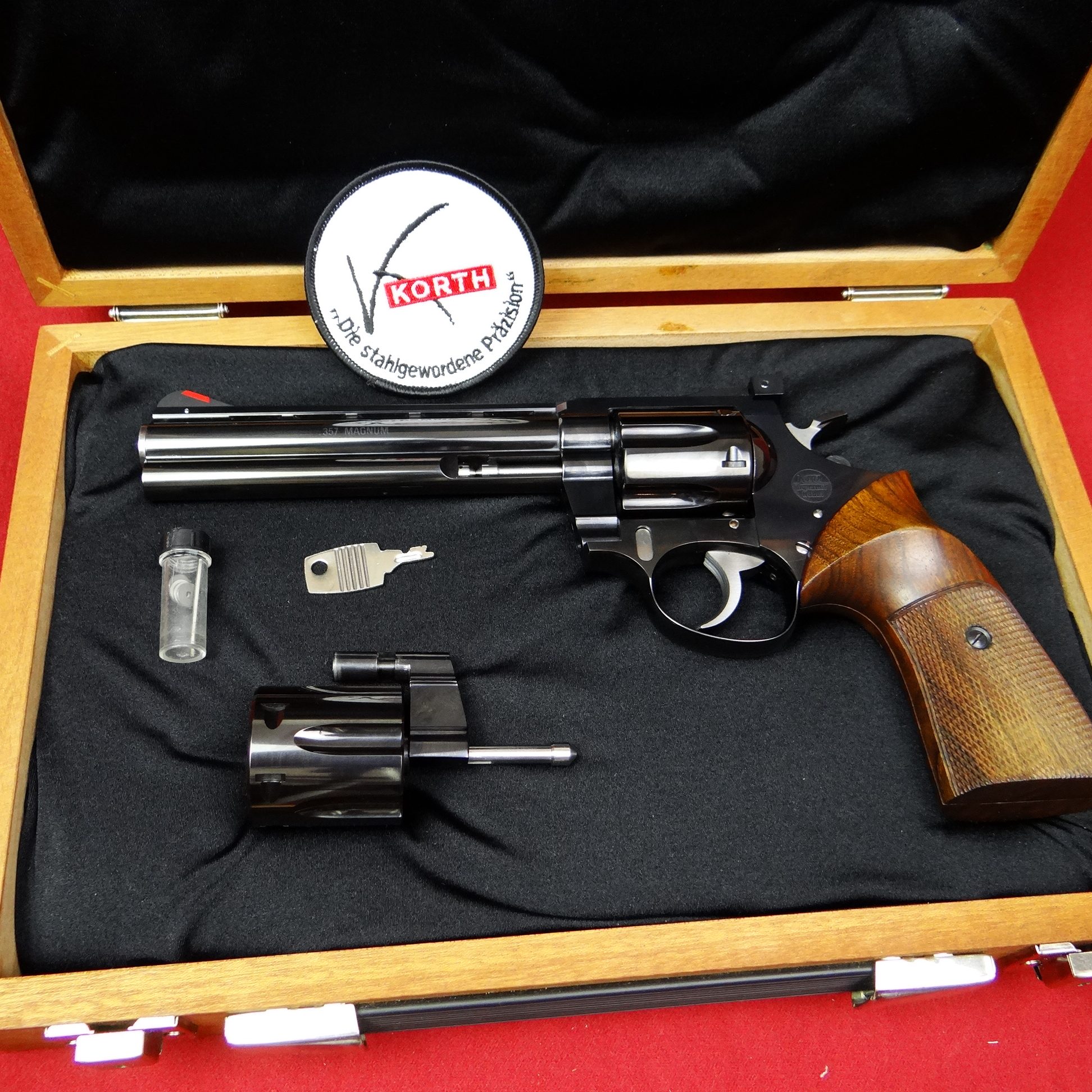 Korth Revolver, DIE STAHLGEWORDENE PRÄZISION MADE IN GEMANY, im cal: .357 Magnum.Dieser Revolver stammt aus der gleichen Sammlung, wie die anderen hochwertigen Revolver.Er befindet sich in Sammlerzustand, und wurde NICHT sportlich geschossen.Der Revolver ist eine sehr seltene Ausführung und der Lauf ist spiegelblank.Es sind auch die kleinen Einstellscheiben für den Druckpunkt dabei.Der Revolver wird im original Korth Lederkoffer verkauft.Einen Korth Revolver noch einmal in diesem Zustand zu finden dürfte schwer werden.Waffe wird selbstverständlich mit VDB Waffenpass undBedienungsanleitung verkauft.Helle Stellen und Schlieren, die Sie evtl. auf den Bildern sehen,sind Spiegelungen durch das Licht und dünne Ölfilme und KEINE Fehler an der Waffe.Es ist einfach ein unbeschreibliches Gefühl eine solche Präzisionswaffe in den Händen zu halten.“ES WAR SCHON IMMER ETWAS GANZ BESONDERES EINE KORTH ZU BESITZEN“Besichtigung und Preisverhandlung sind nach Terminabsprache selbstverständlich möglich.Für weitere Informationen nehmen Sie bitte Kontakt mit uns auf.