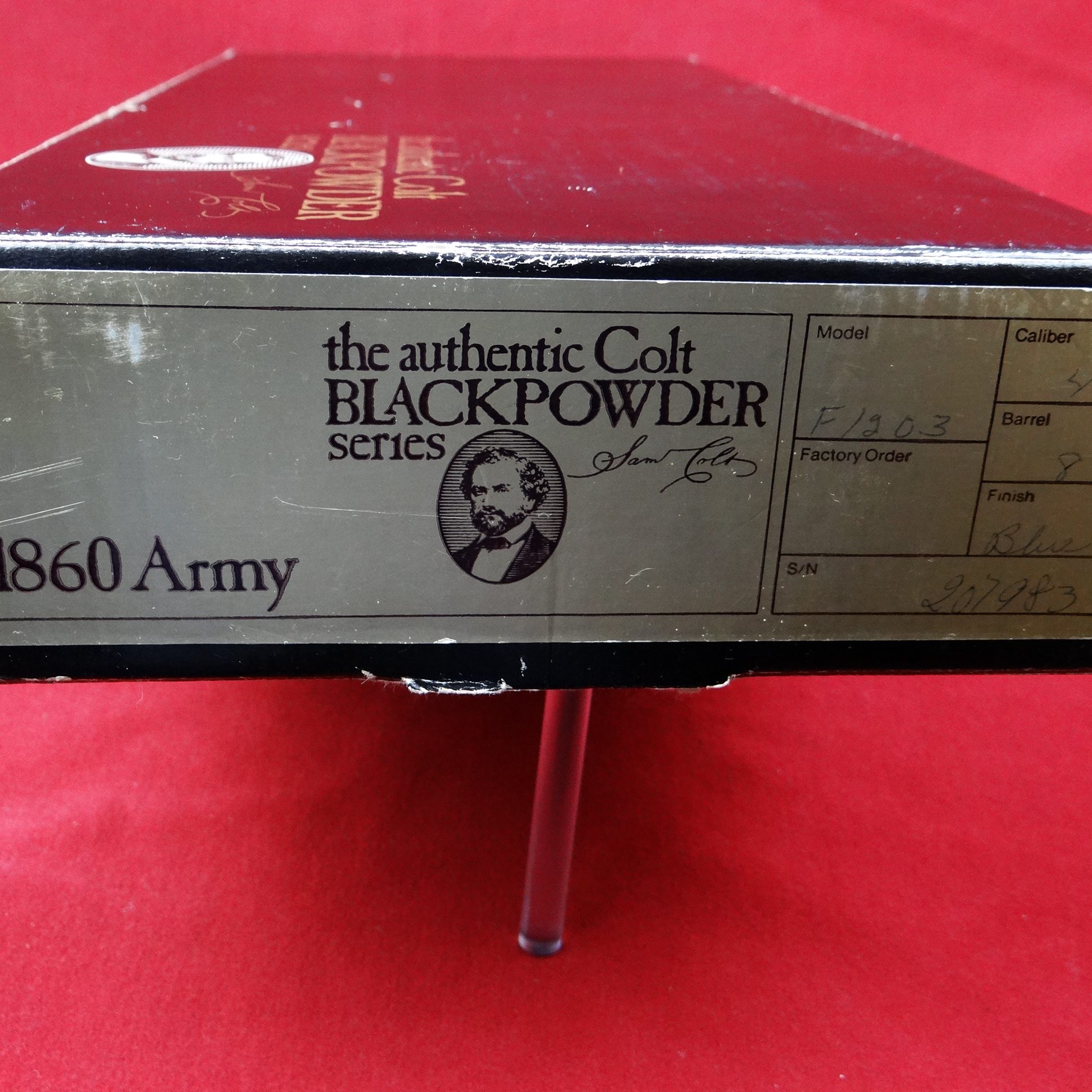 Original Colt 1860 Army, vier Schrauben, also für Anschlagschafft, bundgehärtetes Griffstück.KEINE NACHBAU von HEGE oder anderer Firma, original Colt.Es handelt sich auch bei diesem schönen Revolver,Colt 1860 Army mit gefluteter Trommel um einen Revolver aus der Sammlung,aus der auch die anderen hochwertigen Revolver stammen.Der Revolver befindet sich in tadellosem Zustand. (Die Bilder sagen alles).Der Revolver wurde noch NIE geschossen er befindet sich in der original Verpackung mit allen DokumentenIn dieser Gesamtheit ein sehr seltenes Stück.Es ist ein Revolver der noch von Colt gebaut wurde und nicht von einer anderen Firma nachgefertigt wurde.Hier finden Sie noch weitere Informationen zu dem Revolver.:http://www.collectorsfirearms.com/colt-guns/Die Waffen wird mit VDB Waffenpass und Bedienungsanleitung verkauft.Besichtigung und Selbstabholung selbstverständlich möglich.Fehler die Sie auf den Fotos sehen sind nur Ölspuren oder Spiegelungen durch das Licht, KEINE Fehler.Für weitere Informationen nehmen Sie bitte Kontakt mit uns auf..