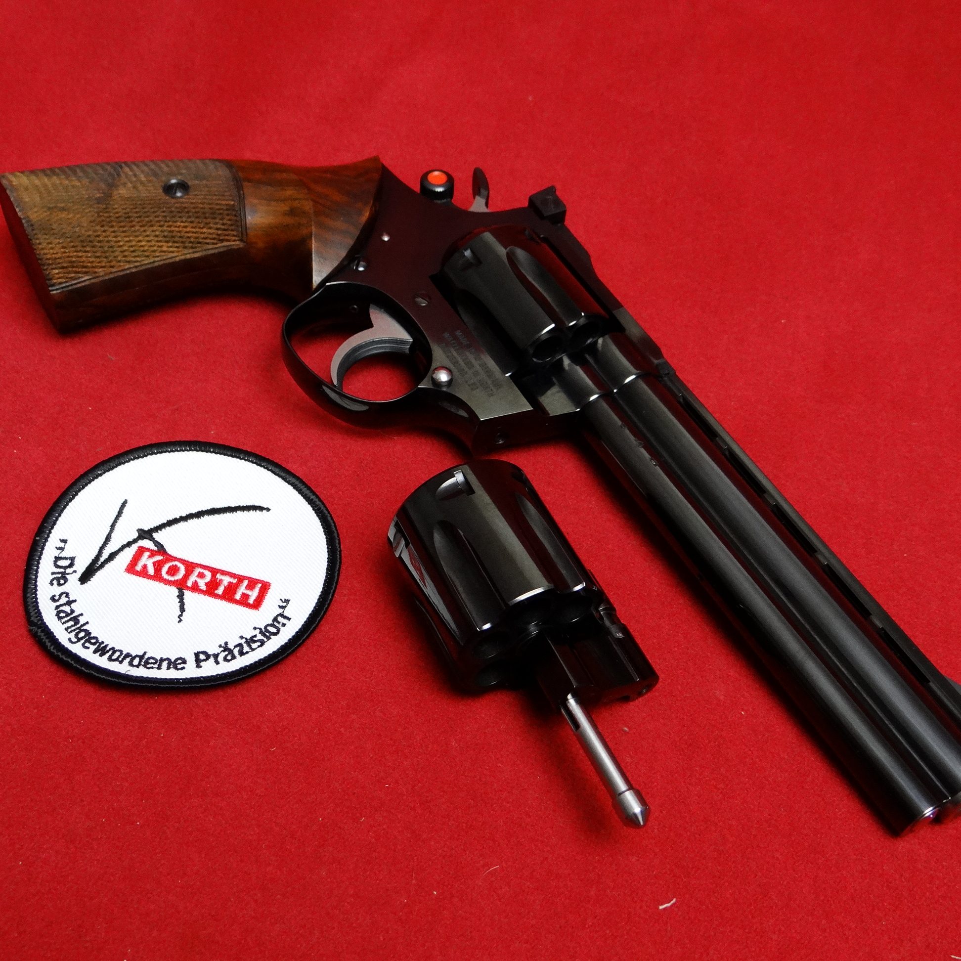 Korth Revolver, im cal: .357 Magnum, Korth Ratzeburg, auch dieser Revolver stammt aus einer Sammlung und wurde nicht geschossen (deutscher Beschuss vorhanden, mehr wurde damit nicht geschossen).Es handelt sich um eine reine Sammlerwaffe, welche nicht bei der Jagd geführt wurde.Der Revolver befindet sich in Sammlerzustand, stand nur in einer Vitrine und wurde NICHT geschossen, dass kann ich nur immer wieder betonen.Die Brünierung ist in hervorragenden Zustand 100% und selbstverständlich hochglänzend, der Lauf ist spiegelblank.Die Waffe wird selbstverständlich mit VDB Waffenpass verkauft.Helle Stellen und Schlieren die Sie auf den Bildern sehen, sind Spiegelungen durch das Licht/ Beleuchtung und dünne Ölfilme, KEINE Fehler an der Waffe.Besichtigung ist nach Terminabsprache selbstverständlich möglich.Wir haben zur Zeit zehn Korth Revolver im Angebot.Alle mit original Verpackung oder den Korth Koffern, incl. Schlüssel für die Koffer.ES WAR SCHON IMMER ETWAS BESONDERES EINE KORTH ZU BESITZEN.Für weitere Informationen nehmen Sie bitte Kontakt mit uns auf