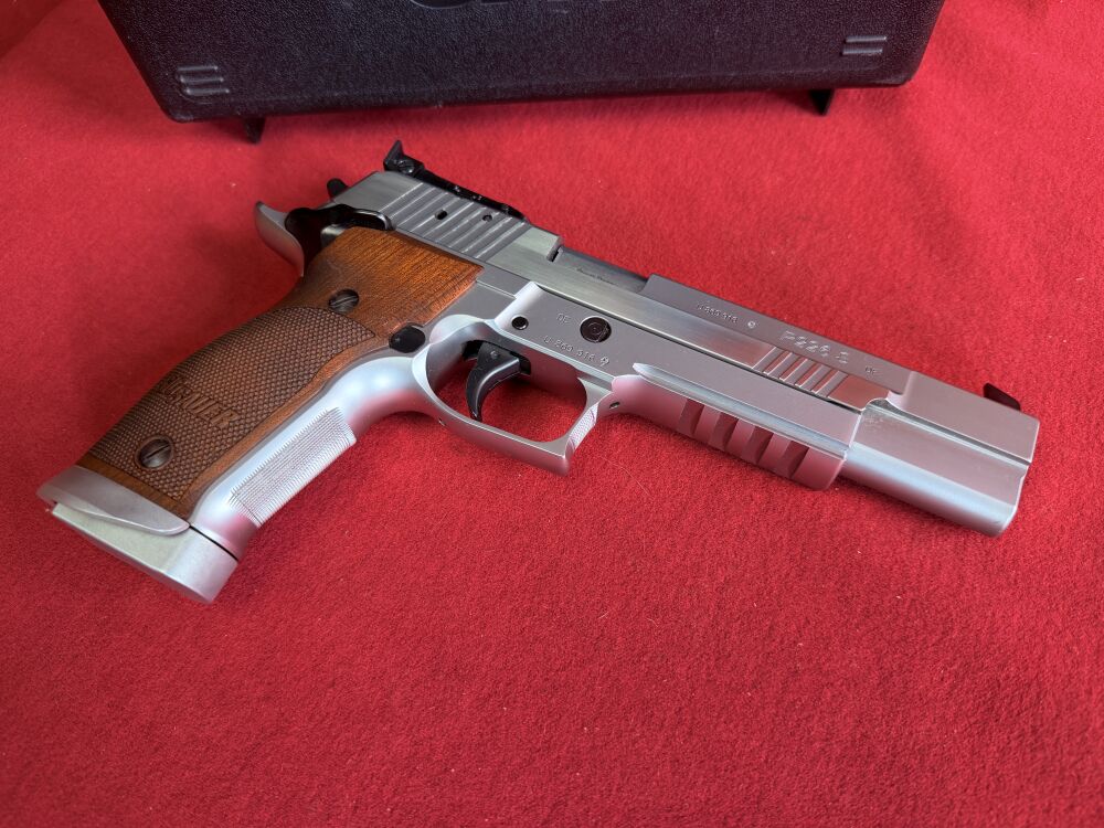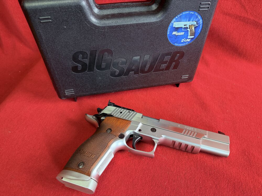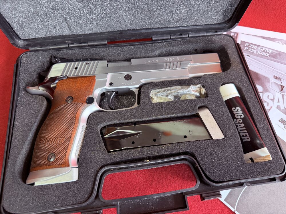 Es handelt sich hier um einen neuwertige Sig Sauer P 226 X-Six im Kaliber 9mm Luger die Waffe wurde so gut wie nie geschossen da Sie auch aus der Sammlung stammt, aus der auch die anderen hochwertigen Waffen stammen.